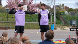 “We’re really grateful to Matt and Stefanos for coming along, and I’m sure that they enjoyed the PE lesson just as much as the pupils did!”